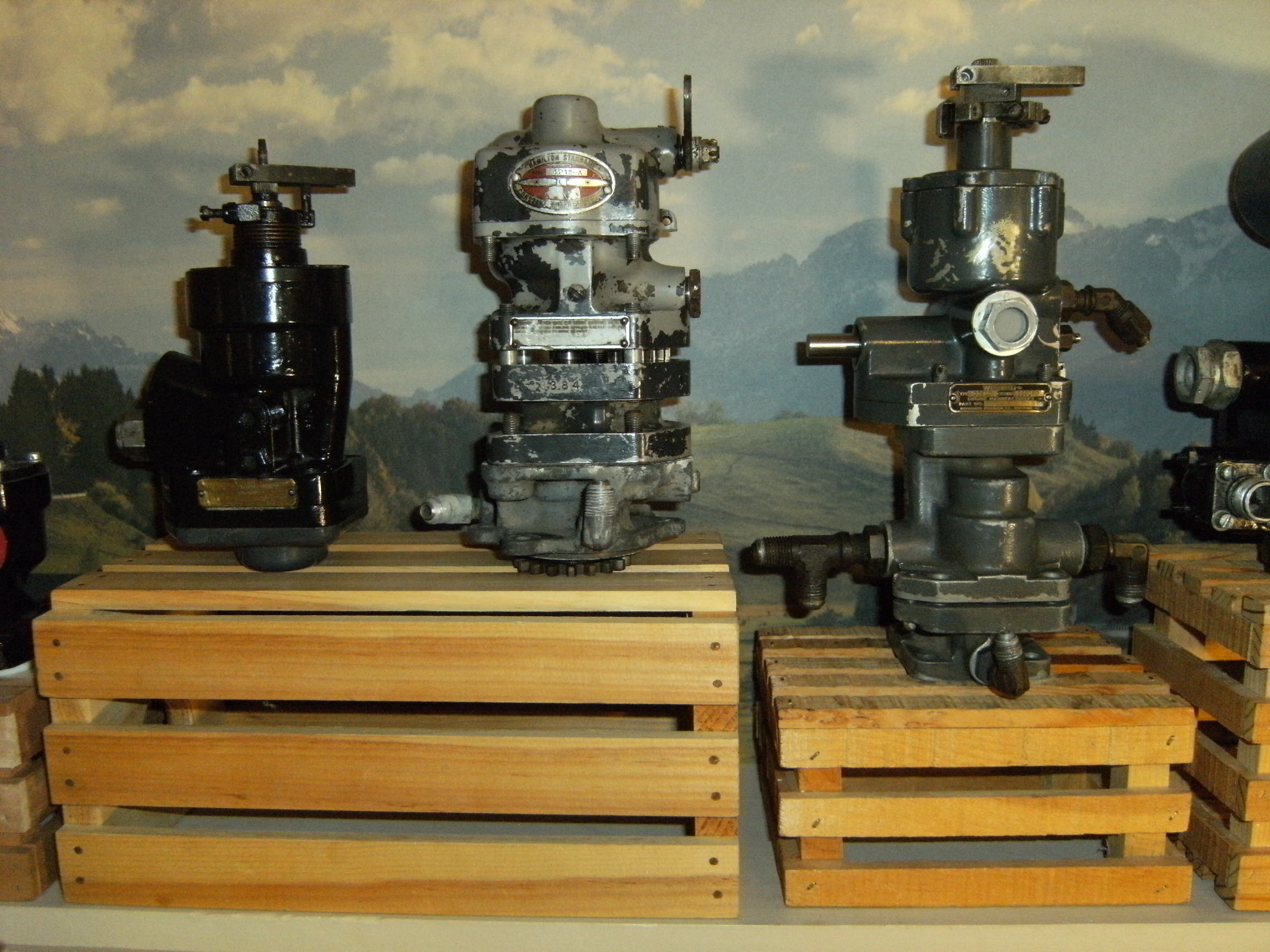 On the right the Woodward 400810 series fuel control went on the small Boeing 500 series gas turbine engine from the 1950's. Google "Boeing jet engines" for historical information.