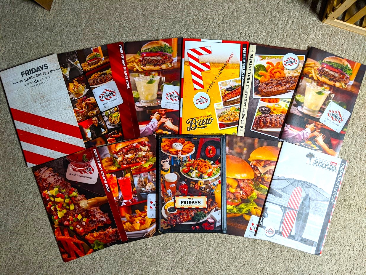 Vintage T.G.I. Friday's menus.