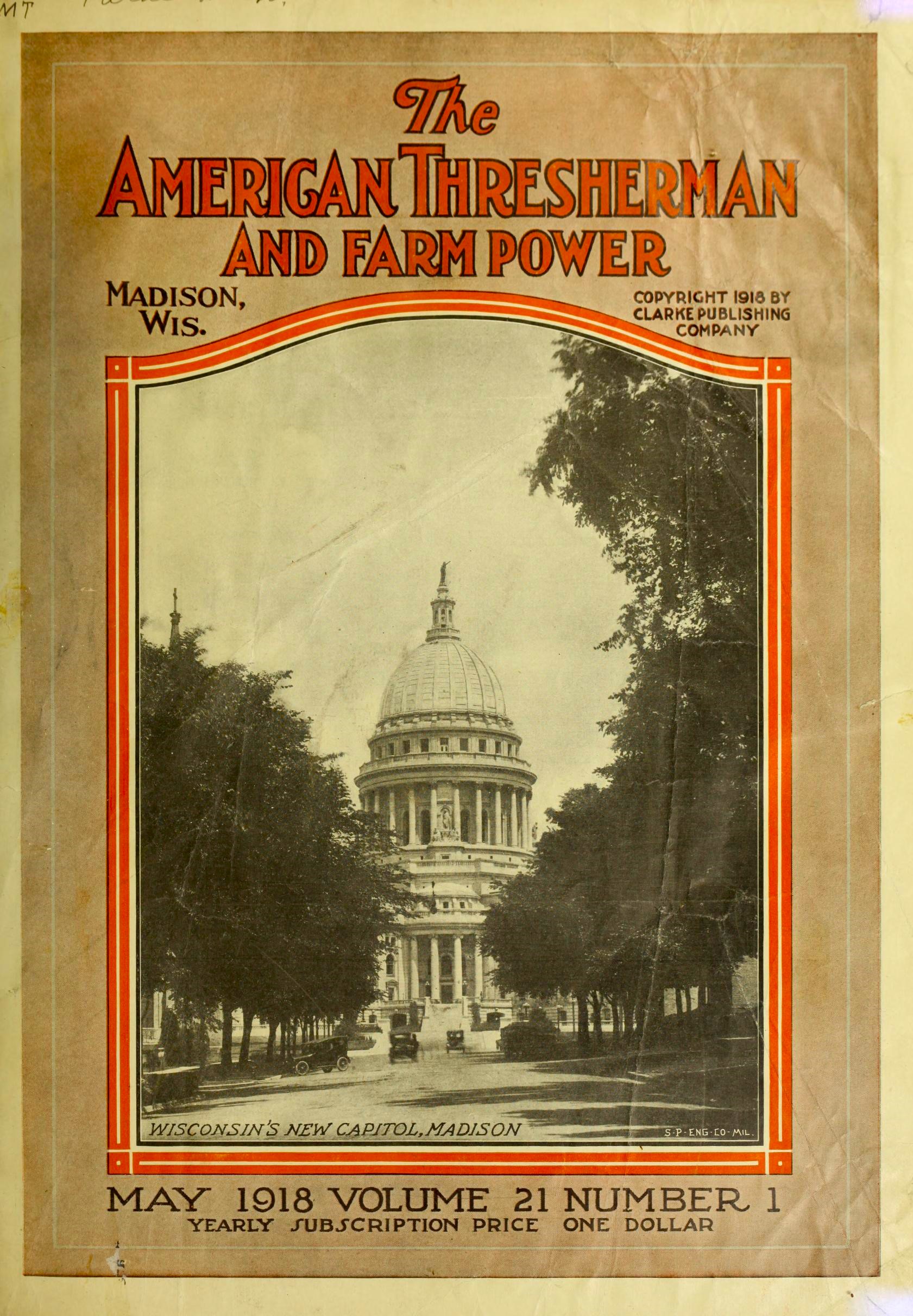 The AMERICAN THRESHERMAN AND FARM POWER. Published in Madison 106 years ago in 1918.